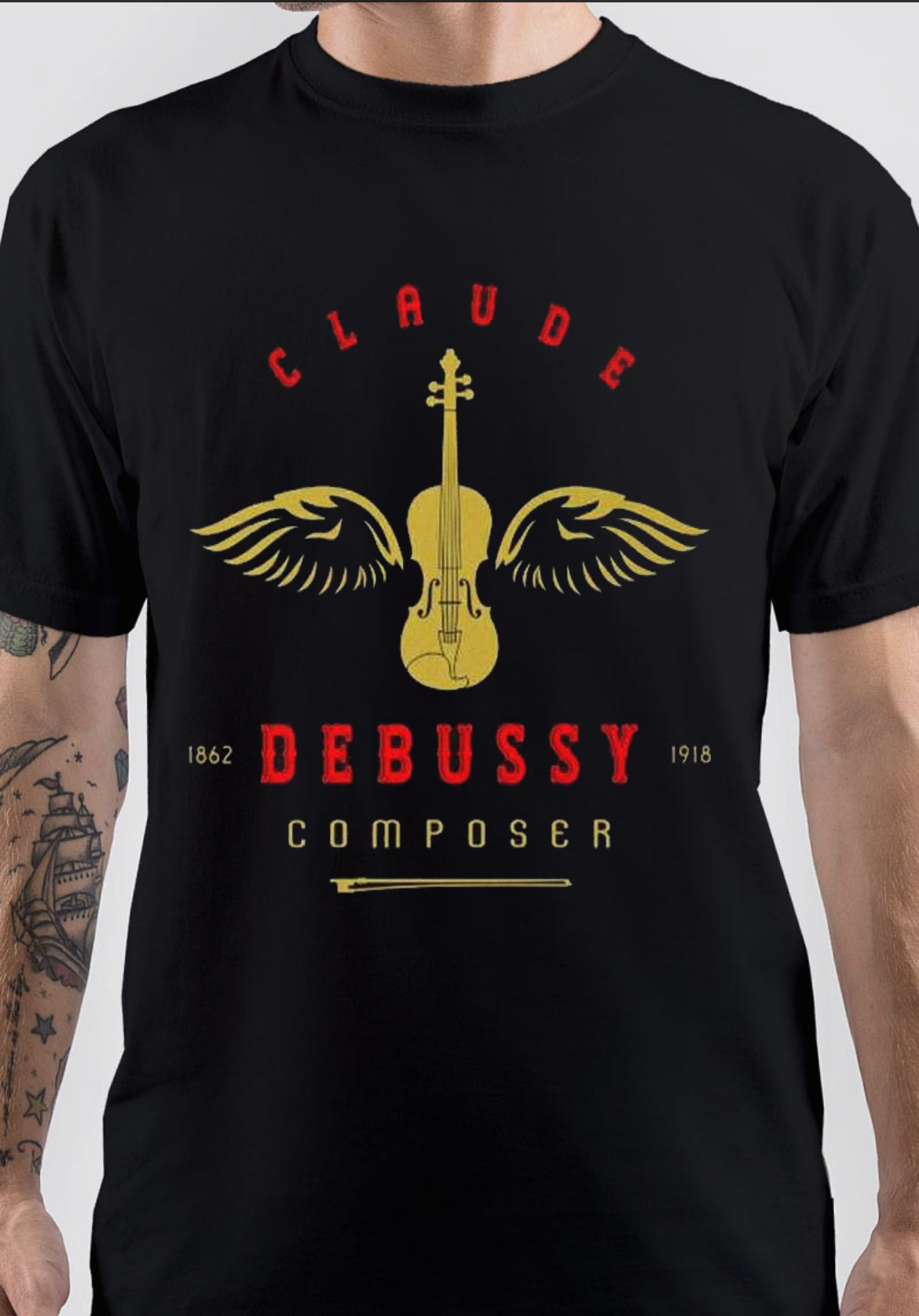 t-shirt and merchandise based on Claude Debussy, available for men, women and kids. delivery in 7 business days.
