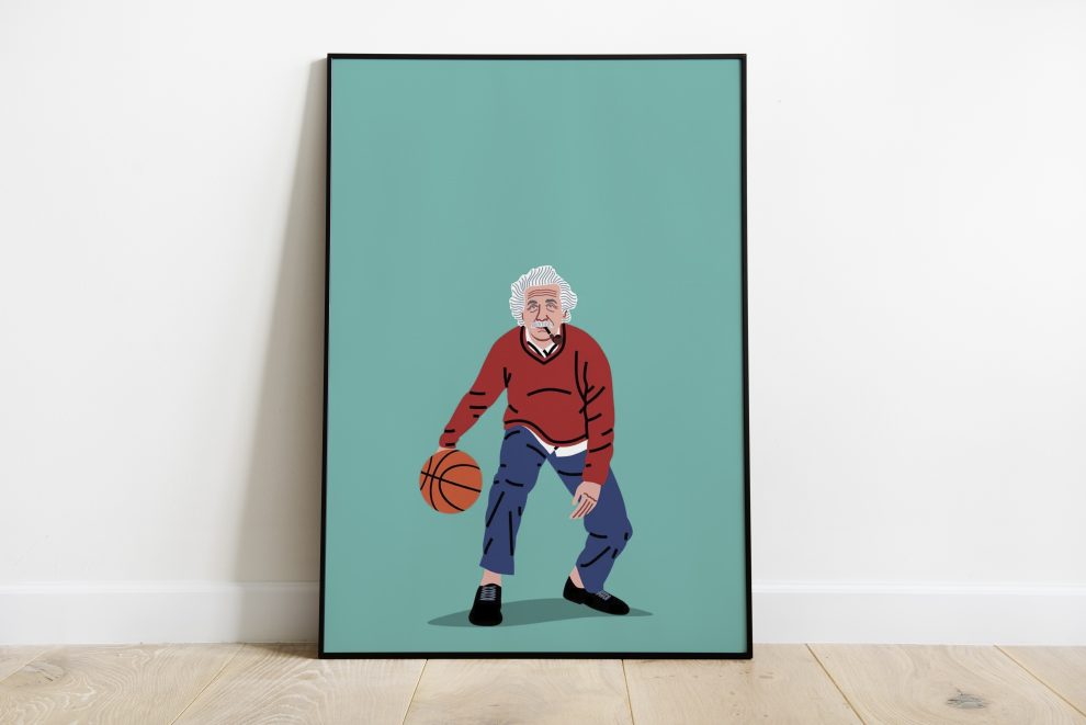 Balling Einstein, basketball posters, einstein posters, ball posters, albert einstein posters, israel posters, math posters, sport posters, jewish posters
