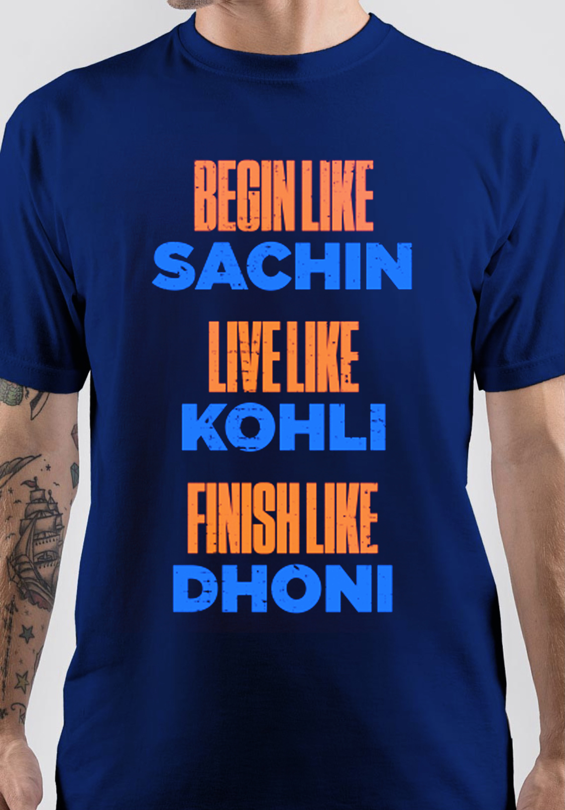 Begin Like Sachin Live Like Kohli Finish Like Dhoni TShirt