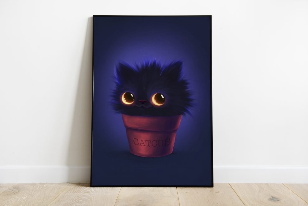 Catcus, funny cat posters, glowing posters, goldfish posters, cat posters, kitten posters, illustration posters, animals posters, cute posters, funny posters, funny animals posters
