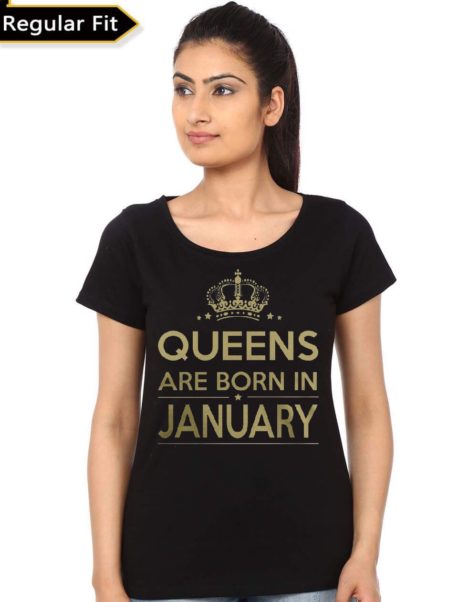 Queens Are Born In January Black Girl's T-Shirt