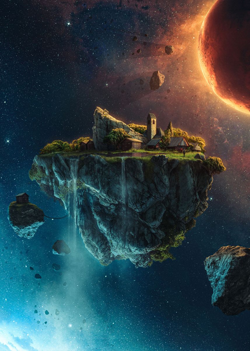 Floating Island, moon posters, island posters, gaming posters, sun posters, sun posters, colorful posters, earth posters, galaxy posters, universe posters, blue posters, floating posters, orange posters, fantasy posters, space posters, movies posters