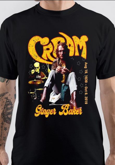 rock’s first superstar drummer, superstar drummer, Ginger Baker, Ginger Baker t-shirt, merch, English drummer, Rock, Peter Edward “Ginger” Baker,