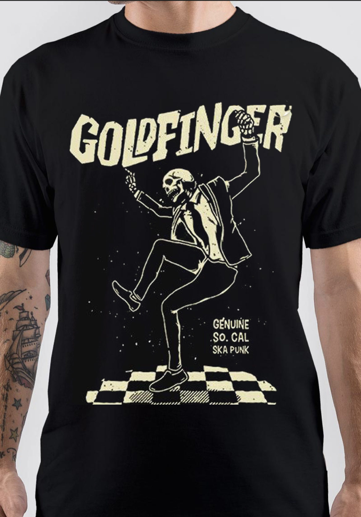 merch, Rock band, band, American punk rock band, Alternative, Dance/Electronic, John Feldmann, Mike Herrera, Charlie Paulson, Darrin Pfeiffer, Travis Barker, Kelly LeMieux, Nick Gross, Simon Williams, Brian Arthur, Goldfinger, Goldfinger t-shirt,