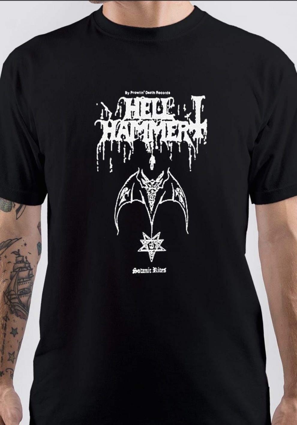 Bruce Day, Hellhammer, Hellhammer t-shirt, merch, band, Swiss metal band, Heavy metal, Black metal, Thrash metal, Metal, Speed metal, Satanic Rites, Thomas Gabriel Fischer, Martin Eric Ain, Steve Warrior,