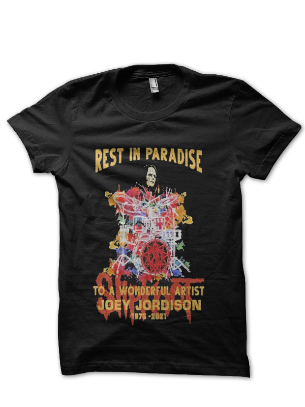groove metal, alternative metal, merch, American musician, horror punk, thrash metal, Slipknot: Welcome to Our Neighborhood, Disasterpieces, Joey Jordison, Joey Jordison t-shirt,  Nathan Jonas Jordison was an American musician, metal band Slipknot, drummer and co-founder of metal band Slipknot, Nathan Jonas Jordison, Heavy metal, nu metal, industrial metal,
