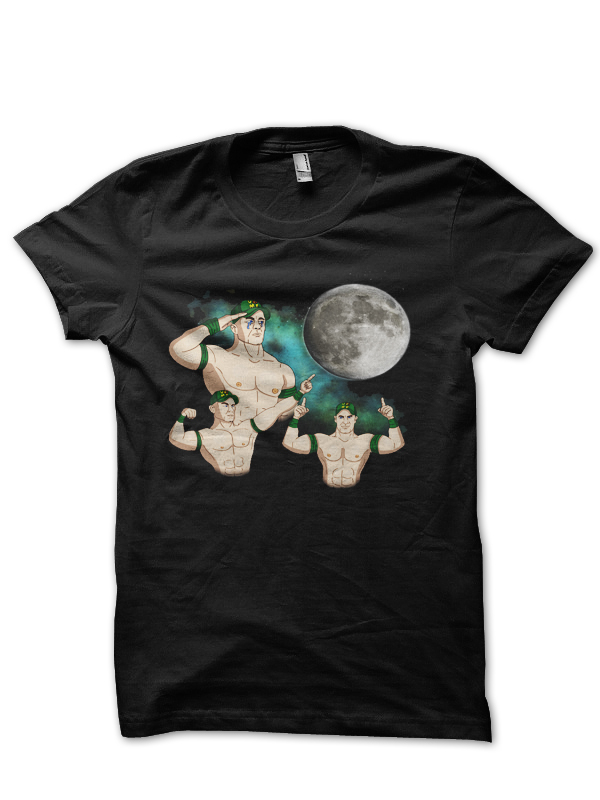 John Cena Flexing at the Moon Half Sleeve Black T-Shirt