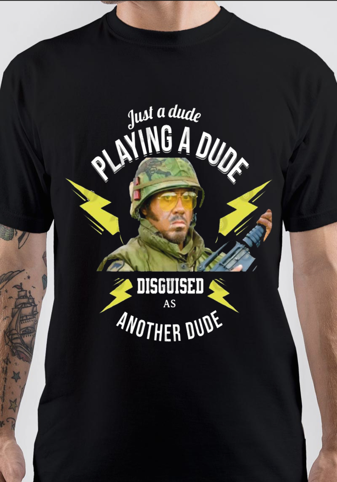 Nick Nolte, Steve Coogan, Matthew McConaughey, Danny McBride, Bill Hader, Kirk Lazarus, Kirk Lazarus t-shirt, merch, Movie, Tropic Thunder, Ben Stiller, Robert Downey Jr., Jack Black, Tom Cruise, Jay Baruchel, Brandon T. Jackson,