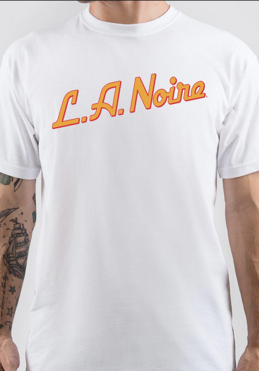 Single-player video game, violent crime thriller,  violent crime thriller, Rockstar North, Rockstar Leeds, Rockstar San Diego, Rockstar New England, L.A. Noire, L.A. Noire t-shirt, merch, Video game, action, adventure video game,