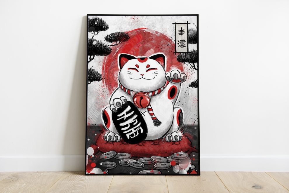Lucky Cat, japan posters, japanese posters, sun posters, sun posters, japon posters, china posters, ruby posters, asian posters, ink posters, black posters, red rising posters, black cat posters, rising sun posters, cat posters, red black posters