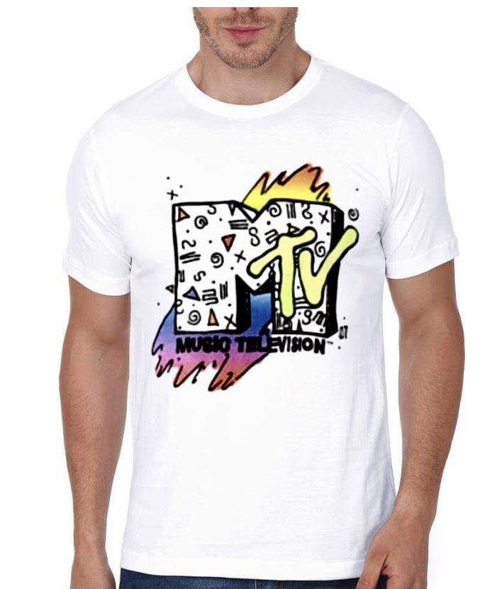 M Tv White Half Sleeve T-Shirt