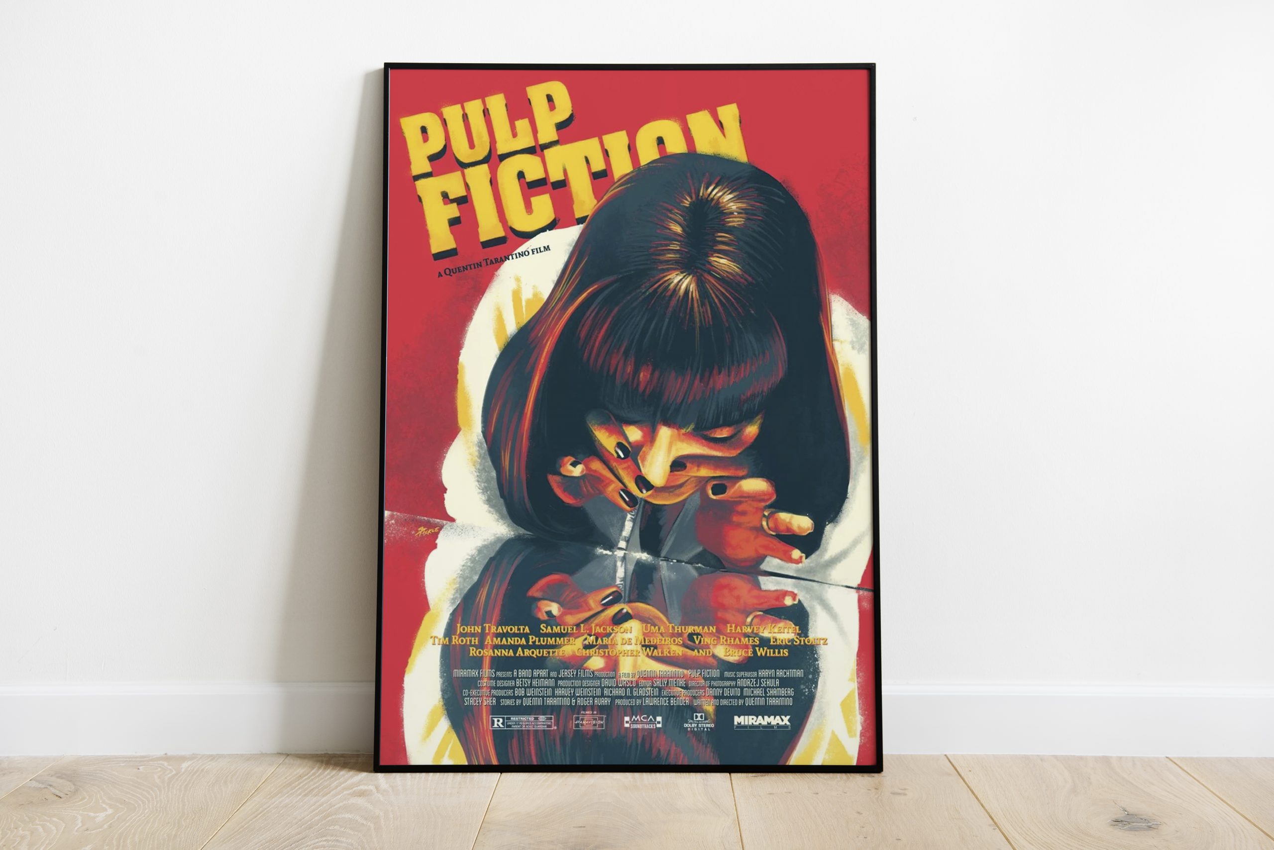 Mia Wallace, classic movie posters, 90s movie posters, pulp fiction posters, mancave posters, quentin tarantino posters, classic posters, tarantino posters, film posters, movie posters, fiction posters, red posters, pulp posters, 90s posters, yellow posters, pickle posters