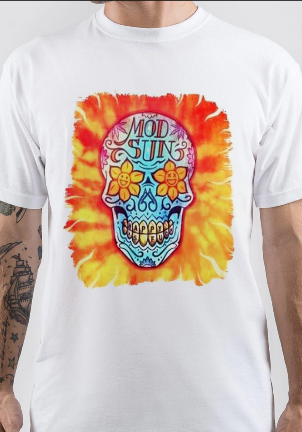 happyBB, Shoot ‘Em Down, Mod Sun, Mod Sun t-shirt, merch, American rapper, singer, Derek Ryan Smith, songwriter, drummer, Scary Kids Scaring Kids, Four Letter Lie, Flames, Karma, Bones, Stay Away, Down,