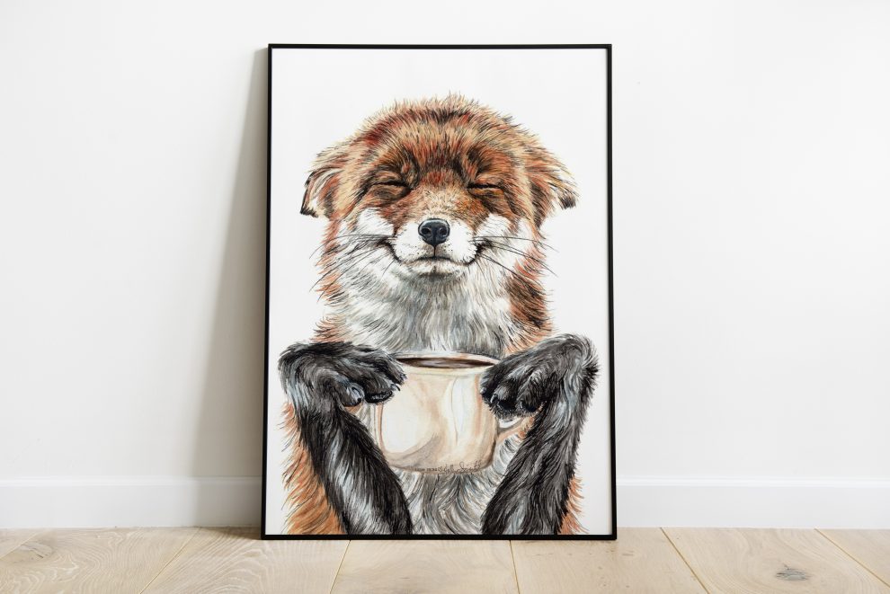cute posters, food posters, kitchen posters, espresso posters, watercolor posters, brown posters, funny food posters, morning posters, black posters, whimsical animal posters, cute animal posters, red fox posters, cute kitchen posters, coffee posters, funny coffee posters