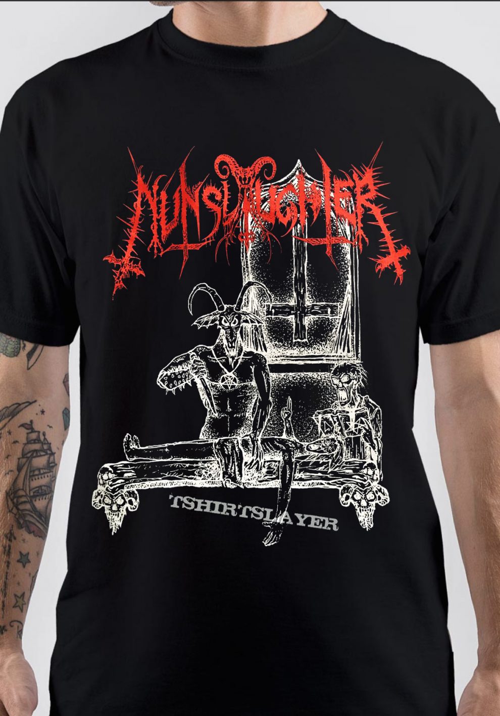 Nunslaughter, Nunslaughter t-shirt, merch, Band, Jim Konya, Rick Rancid, Duaniac, Rob Lesniak, Metal, Rock, goat, Hell’s Unholy Fire, Devil Metal,
