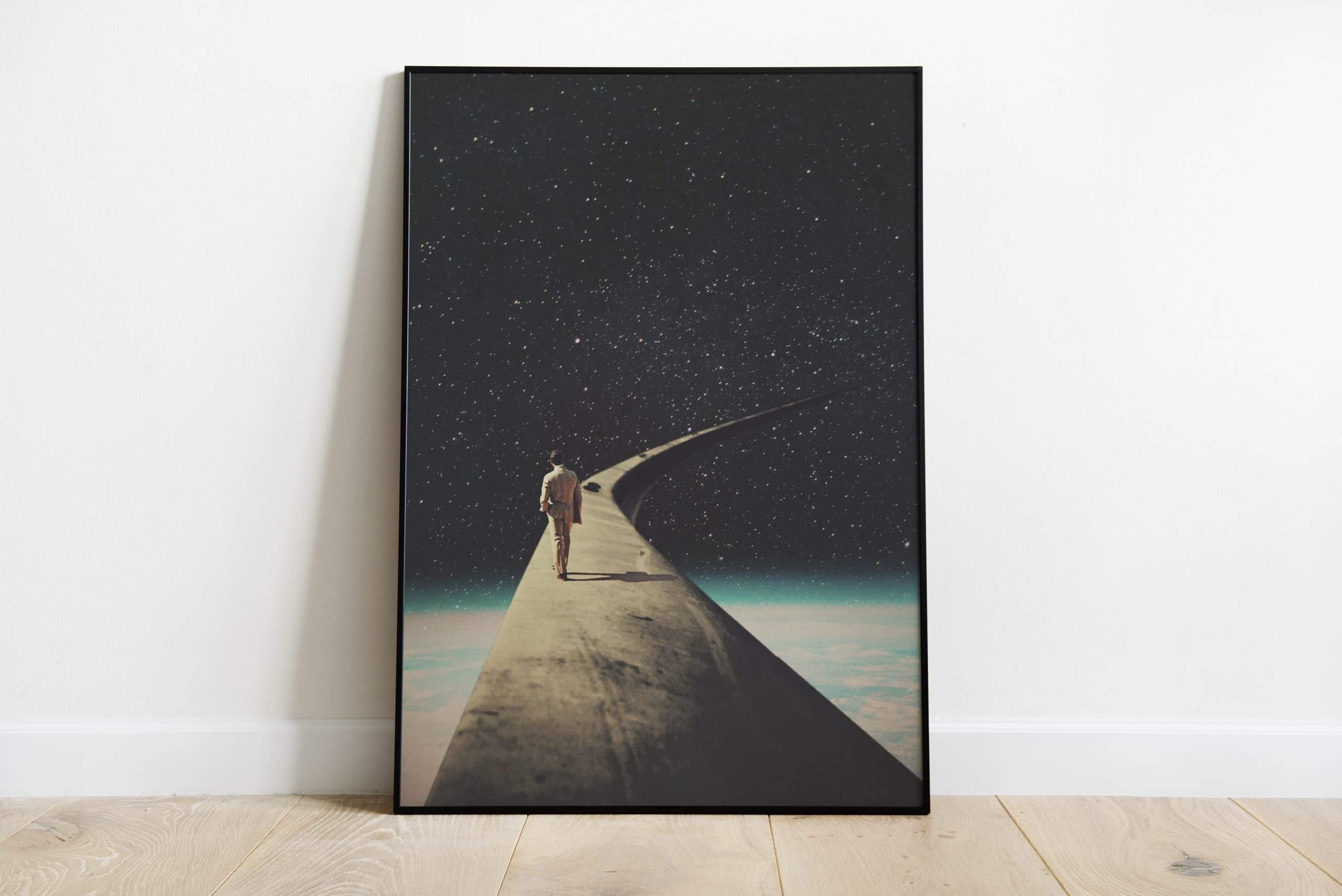 This Road My Dear, vintage posters, retro vintage space posters, man posters, vintage retro posters, traveller posters, futuristic posters, planet posters, collage posters, surreal posters, retro collage posters, surrealism posters, beige posters, galaxy posters, road posters, universe posters