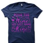 Pour The Wine His Last Name Is Mine Half Sleeve Navy Blue T-Shirt