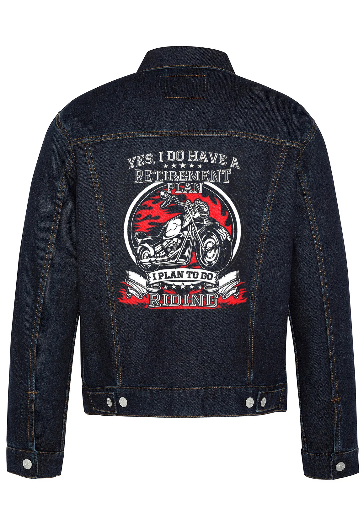Be the first to review “Yes I Do Have A Retirement Plan Biker Denim Jacket”